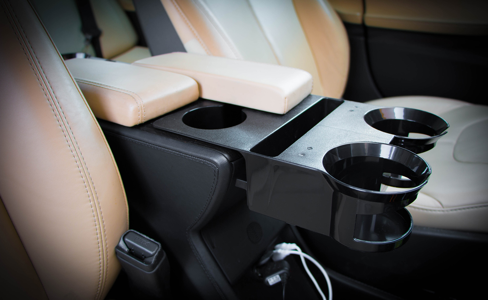 By placing our Tesla Cup Holder into the existing 2 front cup holders, you gain an extra 2 holders when the center arm rests are pushed back. With the arm rests pushed forward you are still able to use Tesla Cup Holder offering comfort and convenience for both driver and passenger!